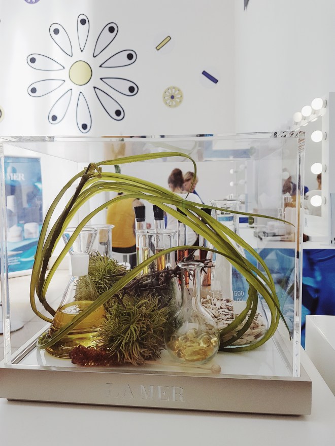 Nach einer kurzen Stärkung mit Feinkost Käfer Baguette und Frozen Joghurt , ging es anschließend noch zu La Mer. Durch meine vielen Ostseeurlaube, kenne ich diese Beautymarke vor allem durch Spabesuche und Kosmetik- Termine auf Rügen. Besonders spannend, fand ich die Darstellung der Inhaltsstoffe, in einem Miniatur Aquarium. Informativ und ein eigenes kleines Kunstwerk für sich. Am La Mer Stand, erwartete mich eine super freundliche Kosmetikerin, welche mir zunächst meine „Favoritencreme’s“ präsententierte. An Ihrem Schmunzeln und Ihrer hochgezogenen Augenbraue konnte ich jedoch erkennen, dass Sie für mich etwas anderes im Sinn hatte. Nachdem ich eine zartduftende Creme auf meinen Handrücken gestrichen und einmasiert bekam, welche ich für mich persönlich nie in Betracht gezogen hätte, war ich mega begeistert und die Dame lächelt vielsagend: „Sehen Sie, ich hab doch gesagt, dass bekommt Ihrer Haut am besten!“. Auch an diesem Stand, gab es kostenlose Samples und mein Rucksack füllte sich minütlich. Leider war der Anny Stand mit Gratis Maniküre durchgehend so überlaufen, dass ich mich nach einer Handmassage bei Rituals , nur noch müde auf die Yoguerette Blumen-Schaukel fallen ließ und das Treiben aus der Ferne beobachtete.